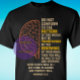 My 11 yo wore adult XL (5’7” 165#). The 8yo is small framed. She wore adult small and tied it in the back. Grandma wore adult large with long sleeve shirt underneath. Tall girl adult medium. Dark haired male adult large. Good quality dark Heather gray, Gildan brand shirt. -it was next up from basic choice and cost about $20 per shirt. Not too thick or thin. Washed and dried well, no major shrinkage. Not see-through. Can wear a bra under it fine. Screen print is just as shown and well done, front and back.