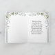Christian inspirational quote scripture greeting card depicts a simple gold frame with sage green leaves on a black background. It features an encouraging Bible Verse Romans 15:13, "May the God of Hope fill you with all JOY and PEACE as you trust in Him." The greeting, prayer can be customized or deleted for a hand written message.