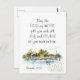 Postcard with inspirational quote scripture depicts a simple watercolor landscape including a house on the lake with trees and sea grass. It features an encouraging Christian Bible Verse Romans 15:13, "May the GOD of HOPE fill you with all JOY and PEACE as you trust in Him." The greeting, prayer can be customized or deleted for a hand written message.