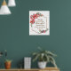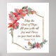 Inspirational scripture poster depicts red and pink watercolor flowers, berries and greenery on an elegant gold frame. It features a portion of an encouraging Bible Verse Romans 15:13, "May the God of Hope fill you with all Joy and Peace as you trust in him." *