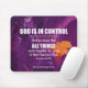 Inspirational Christian Scripture MOUSE PAD with the Bible verse from Romans 8:28 - ALL THINGS WORK TOGETHER FOR GOOD - and the heading reads GOD IS IN CONTROL. The placeholder name is CUSTOMIZABLE, so you can PERSONALIZE by replacing with your name or choice of text. Part of the INSPIRATIONAL PRINTS Collection by Berean Designs.