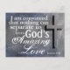 Inspirational quote Christian postcard features a cross on a stone background with Bible Verse Romans 8:38, "I am convinced that nothing can separate us from God's amazing love." The back greeting can be customized or deleted for a blank card._