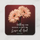 Business card with Christian inspirational quote scripture depicts a simple floral photograph by Victoria Aleksandrova, with two pretty pink, peach flowers on a brown background. It features a portion of an encouraging Bible Verse Romans 8:39, "Nothing can separate us from the Love of God."