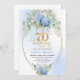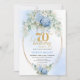Romantic 70th Birthday Blue Floral Gold Invitation
