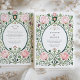 Announce your union with this exceptionally beautiful Art Nouveau-inspired wedding invitation. A masterpiece of vintage elegance, the design features a perfectly symmetrical floral frame with lush, soft pink peonies in full bloom. The flowers are brought to life with a delicate watercolor effect, creating a sense of timeless romance. Graceful, swirling vines in shades of sage and hunter green are interspersed with charming heart-shaped leaves, adding a touch of whimsy. A dark green oval elegantly frames your wedding details, which are presented in a classic serif and romantic script font, fully customizable to your personal information. This invitation is ideal for a couple seeking an artistic, romantic, and unforgettable stationery suite for their garden, vintage, or fairytale-themed celebration.