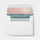 Envelope with a pink sandy beach design printed on the inside, and a romantic travel theme airplane heart monogram on the outside, and printed return address that can be changed to any color to match your beach destination wedding color theme. Click "customize further" to use the advanced editor for detailed design changes.