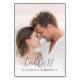 This wedding table card features a romantic and tender design with a close-up image of two individuals in an affectionate pose, set against a softly blurred beach background. The color palette includes soft pastels like light beige, sandy brown, and muted blues, creating a serene and dreamy atmosphere. Elegant cursive typography highlights the table number, while simple sans-serif text provides a clean contrast. The overall mood is warm and loving, perfect for celebrating love and unity at your special event.