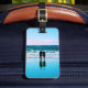 Your bag will stand out on the carousel with this luggage tag of a couple taking a romantic stroll on the beach.
