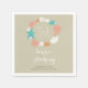 Nautical beach wedding paper napkins with seashells wreath for destination, beach weddings. Casual and pretty taupe sea foam colors beach wedding napkins.
