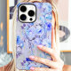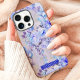 This elegant phone case showcases a serene arrangement of blue and lavender roses accented with soft greenery on a muted gray background. The customizable navy nameplate adds a stylish and personal touch, making it perfect for those who appreciate timeless floral designs with a sophisticated flair.