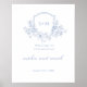 Romantic Blue Floral Monogram Crest Welcome Sign