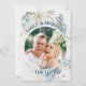Romantic Dusty Blue Floral Photo QR Code Wedding Save The Date Card features dusty blue celeste and delphinium flowers with eucalyptus greenery accented with butterflies. Add your favorite photo and custom text in elegant modern script typography, with your wedding website and QR code. Designed for you by Evco Studio www.zazzle.com/store/evcostudio