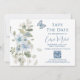 Romantic Blue Floral Photo QR Code Wedding Save The Date
