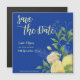 Romantic Blue Florals & Lemon Save the Date Card | Elegant Yellow & Blue Watercolor Card .