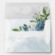 Gorgeous blue watercolor botanical wedding envelope featuring beautiful blue shades and white flowers with green leaves