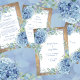 This romantic wedding design features soft watercolor hydrangeas in dusty blue tones, elegantly arranged on a rustic textured background. Delicate botanical details and classic typography create a timeless and charming look, ideal for countryside or garden weddings. Customizable wedding details and your monogram adds a personal, elegant touch.