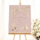 Welcome guests with elegance using this blush pink floral wedding sign, featuring neutral ivory and gold wildflowers on a soft dusty rose background. The graceful script and botanical accents create a warm, romantic first impression—perfect for boho, rustic, and vintage-inspired ceremonies.