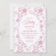 Celebrate your upcoming arrival with this elegant baby shower invitation featuring classic French toile de Jouy roses. Soft dusty pink, blush, and pink and white floral patterns create a timeless, romantic look accented by refined rose gold tones. Professionally printed by Zazzle, this design offers crisp details, beautiful color balance, and a smooth, high-quality finish that highlights the intricate rose pattern. Perfect for a classic, floral, or vintage-inspired baby shower, this invitation is fully customizable and arrives polished and photo-ready. A charming choice for welcoming baby with graceful, traditional floral style.