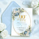 Romantic Boho Dusty Blue Flowers 90th Birthday Invitation