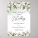 Romantic boho white roses and greenery wedding welcome poster 24x36