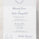 Our All-In-One Wedding Invitations encapsulate your love story in one elegant package. Featuring a romantic botanical crest in dreamy blues, these invitations unfold to reveal all the details of your enchanting, traditional wedding.