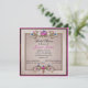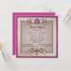 Beautiful pink and tan bridal shower invitation done in a square shape. Elegant graphics of a gold tone framed tan text area is decorated, at the top and bottom, with romantic gilded flowers with a pink and burgundy outer frame. Personalize all the text to suit your special event. Lovely keepsake invitation the bride to be will love.