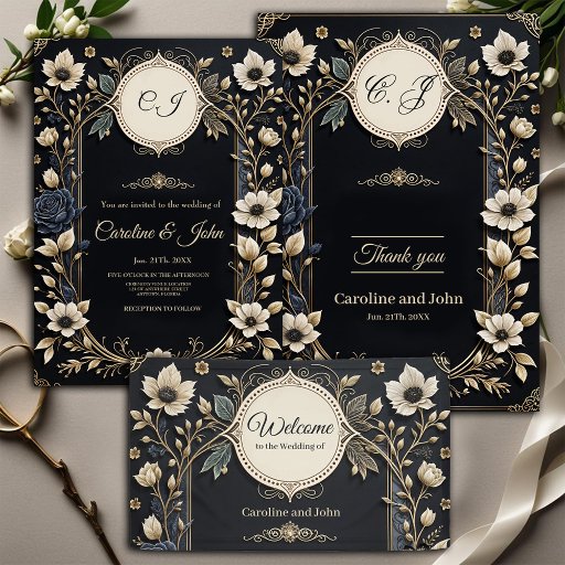 wedding, elegance, part is generative content, flowers, deep blue, touch of luxury, beautiful contrast, blossom