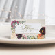 Seat guests with romantic burgundy and peach watercolor florals decorated with gold accents, perfect for summer or autumn weddings with botanical and boho vibes.