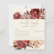 This Elegant Burgundy and red floral wedding rsvp card features your wedding details in modern lettering, set in a oval frame of dusty beige white with watercolor flowers and botanical foliage in desert inspired earth tone shades with burgundy,red,maroon and ivory color with warm copper color text.vintage frame touch make this vintage floral invitation unique.A perfect crimson red vintage wedding rsvp card for summer, spring fall and winter weddings.