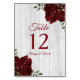 Romantic Burgundy Red Rose Wedding or Quinceanera Table Card Numbers