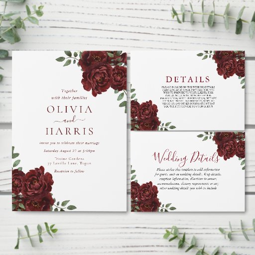 We have hundreds if not thousands of different invitation designs like Burgundy Wedding Invitations and Burgundy And Blush Invitations. However, if none of these designs match your needs you can customize any existing design or make your own from scratch so that you can set the stage for a memorable celebration.