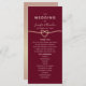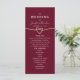 Elegant, minimalist, modern, typography double-sided burgundy wedding program with romantic gold rope heart and simple calligraphy script.