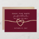 Announce the beginning of your romantic journey with our chic burgundy save the date invitation. Featuring elegant simplicity, adorned with delicate calligraphy script and a shimmering gold rope heart. It's the perfect way to set the tone for your modern and romantic celebration of love.