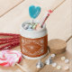The "Mr & Mrs" candy jar has a beautiful watercolor design with a white floral frame on a warm, earthy orange background. Personalize it with the last name of the happy couple and their wedding date to make it a special keepsake that brings back memories from the special day.