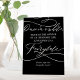 This romantic calligraphy dark black wedding fairytale pedestal sign is perfect for a simple wedding or bridal shower. The modern classic design features fancy swirls and whimsical flourishes with gorgeous elegant hand lettered typography on a black background.