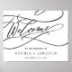 This romantic calligraphy flourish welcome wedding poster is perfect for a simple wedding. The modern classic design features fancy swirls and whimsical flourishes with gorgeous elegant hand lettered typography. Customize the poster with the name of the bride and groom, and the date of the wedding.