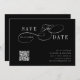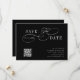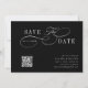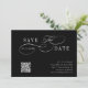 This romantic script save the date wedding announcement card is perfect for a simple wedding. The minimalist black and white design features elegant and romantic swirly calligraphy lettering with a QR code.