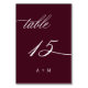 Romantic Calligraphy Wedding Number 15, Burgundy Table Number