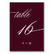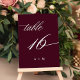 Romantic Calligraphy Wedding Number 16, Burgundy Table Number