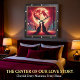 This striking square wall clock features a breathtaking digital illustration of two cat silhouettes sitting together under a massive, glowing full moon. The cats are perched on a hill, their tails curled as they look toward each other against a deep red and magenta night sky. The scene is filled with glowing pink hearts that float upward like embers, while silhouettes of whimsical trees and distant mountains add depth to the landscape. The artwork is housed within a modern black wood-textured frame with bold white numeric markers for easy timekeeping. This functional home accessory is a perfect decorative piece for cat lovers and holiday enthusiasts. Its dramatic lighting and romantic atmosphere make it an ideal gift for Valentine Day, anniversaries, or as a cozy accent in a bedroom or living area.