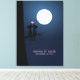 Custom canvas print features a high quality vector illustration of two cats under full moon. Personalize with your names and wedding date or any text of your choice.