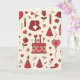 This doodle pattern features a variety of hand-drawn elements in a warm palette of reds and soft pinks, including: