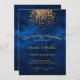 This romantic save the date card features a blue nebula night sky and stars with a plash of gold confetti.