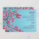 Romantic pink cherry blossom tree full of blooms and petals blowing in the air. Painted in watercolor as a one of a kind artwork. This is a modern designed invitation with script and combination text in dark grey. (Text color is customizable). The background has a slight paper texture and blue gradient.