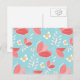 Romantic Chic Coral Retro Floral Pattern Turquoise Postcard