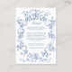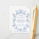 This classic and romantic design is a modern adaptation of an historic French etched frame of dusty blue intertwined roses, flowers, foliage and ribbons ca 1770 by Rococo designer Pierre Ranson. It includes customizable text fields and a complementary floral graphic on the back.