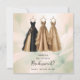 Propose to your bridesmaids with grace and style using our Romantic Chic Three Elegant Natural Bridesmaid Dresses Proposal Cards. These cards feature beautiful watercolor-effect illustrations of three long, elegant, and sophisticated bridesmaid dresses, each delicately hanging on a hanger. The dresses, designed with careful attention to detail, embody the elegance your bridesmaids deserve. The card’s background is adorned with a subtle floral pattern in soft browns and greens, adding a touch of natural refinement to the design.