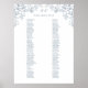 Seating chart organized by first names. Tiny delicate leaves and flowers with editable text and background color. This layout shows 50 names in each column; choose a smaller size for less people and edit text size in the full editor on a computer or tablet.