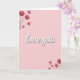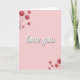 This Valentine's Day card has a soft pastel pink background that feels calm and sweet right away. In the center, the words “love you” appear in smooth, flowing white lettering, making the message the main focus. A light gray shadow sits just behind the letters, giving them a gentle lift from the page. In the top-left corner, a small bouquet of deep rose and reddish-pink flowers leans inward, with simple petals and thin, curving stems. The bottom-right corner mirrors it with a similar floral cluster, including reddish-pink petals outlined in white. Together, the flowers frame the message without crowding it, so the card feels balanced and easy on the eyes. It’s meaningful to give because it says something direct and caring, whether you’re sharing it with a partner or someone close ❤️.