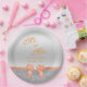 Elegant sparkly Wedding Paper plates with a classy romantic coral bow and ribbon image on a pretty shiny silver glitter and silver gradient background. All text is fully customizable to meet your requirements. If you need help to customize your product or would like matching products please contact me through my store and i will be very happy to help you.
